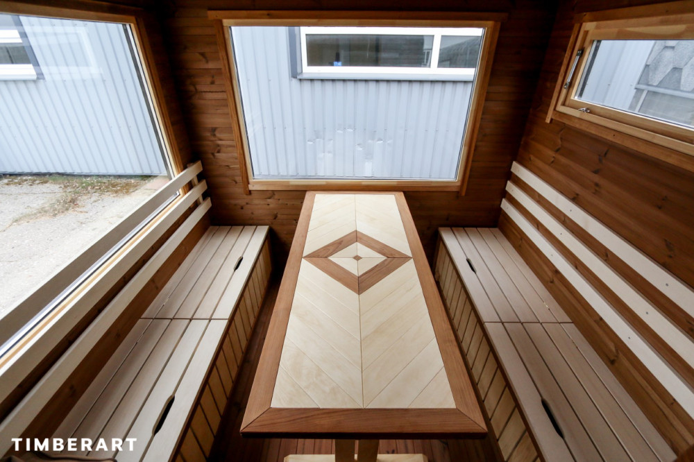 - Pirts aprīkojums, soli, termo apses lāvas, termo priedes grīdas redeles un noteces,