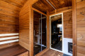 - Pilns LED apgaismojums, pirts telpā papildus muguru balstu LED, ārpusē pa perimetru.